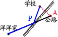 我们可以把学校看作一个点,公路看作一条直线.以公路为对称轴,取学校的对称点A,连接洋洋家与点A,与公路相交于点P,连接点P与学校,则洋洋从家到点P处送妈妈再到学校,路程就最短.