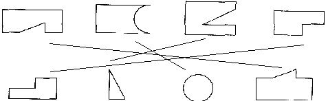 连一连,第二排图形是从第一排图形中的哪一块剪下来的。