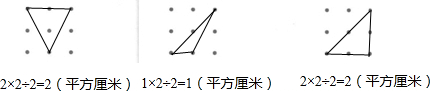 连接不同的点子可围成形状不同的三角形,连一连,并求出三角形的面积.(每相邻两个点的距离为1cm)