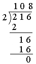 改正方法: 1除以2不够商1必须要用0来占位.正解: 216÷2=108
