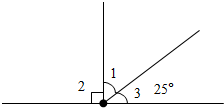如图∠1=180°-∠2-∠3=180°-90°-25°=65°.