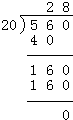 560÷20=28