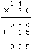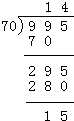 995÷70=14…15