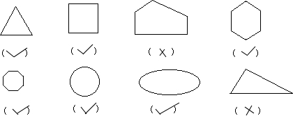 下面的图形,哪些是轴对称图形?是轴对称图形的,在它下面的括号里画“√”;不是的,在它下面的括号里画“×”.