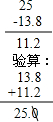 点评:考查了小数加减法运算,关键是熟练掌握计算法则正确进行计算.