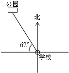 以学校为观察点,公园在学校的西偏北62度方向;