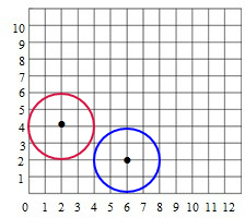 将所画的圆向右平移4格,再向下平移2格,画出平移后的图形.圆心的位置是(6,2);