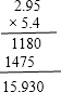 解答:解:(1)2.95×5.4=15.93;