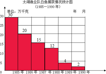 (2)根据太湖渔业队1985-1990年白鱼捕获情况,可以看出太湖白鱼的数量越来越少,随着白鱼的生存环境受到了威胁,野生白鱼的数量越来越少.因此,我们一定要加大保护太湖白鱼的力度,对白鱼资源进行保护,繁殖期禁止捕捉,使之常盛不衰.