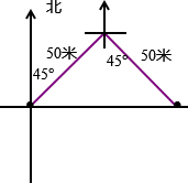 小丽先向东偏北45°方向走50米,又向南偏东45°方向走50米,她现在所在的位置是起点的( )方向.