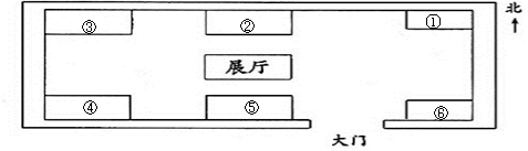 “走进科技馆大门,在展厅的正北面有电脑屋,南面有气象馆,在展厅的东北面有环保屋,西北面有天文馆,在展厅有东南面有生物馆,西南面有航模馆.”请你根据小亮的描述,把这些馆名的序号填在适当的位置上.