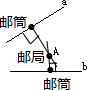 要在两条街道A和B各设一个邮筒,M处是邮局.邮筒设在何处邮递员到两条街取信的距离最短?请在图中画出来.