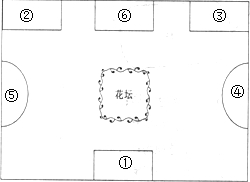 花坛的南面是大门;超市在花坛的西北角;花坛的东北面是休厅;休息厅的南面是电影院;花坛的北面是医院.①大门②超市③休息厅④电影院⑤健身房⑥医院
