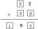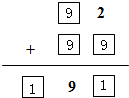 2+8=10,向十位进1,9+9+1=19;2+9=11,向十位进1,9+9+1=19.