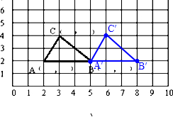 画出三角形向右平移3格的图形位置.