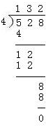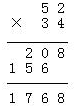 | 228÷6= | 52×34= | 618÷3= | 36×22= |
