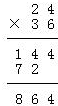 | 24×36= | 528÷4= | 18.6+23.7= | 13.6-5.8= |