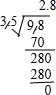 点评:本题考查了简单的小数除法竖式计算的方法,计算时注意:小数点要对齐,余数要比除数小.