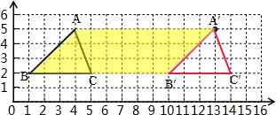 (2)将三角形ABC向右平移9格,得到一个新的三角形A’B’C’.请画出三角形A787C7,并求出三角形ABC在平移到三角形A’B’C’过程中所扫过的面积.