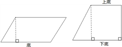 分别画出以下平等四边形和梯形的高,并分别标出它们的底.
