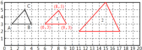 (2)如果再将这个三角形按2:1放大,请在右边空白部分画出这个放大后的三角形.