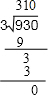 (2)因为93被3除尽了,但被除数末尾还有一个0,商应为310,而不是31,故错误;