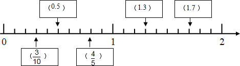 从1向右3格用小数表示为 1.3,向右7格用小数表示为1.7.