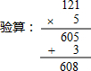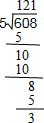 (3)608÷5=121…3;