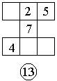 把5、6、7、9填在方格内,使横行、竖行三个数相加的和都等于20。