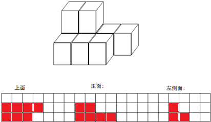 从正面看到的图形是2层:下层4个正方形,上层2个正方形靠左边;