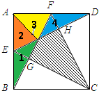 分析:阴影部分的面积=正方形的面积-△ADE-△1-△BCG-△DHC;由此利用题干中的数据即可推理解决.