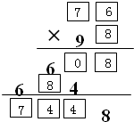 当当第一个因数是86时,86×9=774,与6□4不符合.所以,只有上面一种情况.
