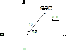 (1)超市在少年宫______偏______方向上,距离少年宫约是______米.