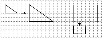 分析:根据图形放大与缩小的意义,把直角三角形的两条直角边由2格、3格放大到4格、6格即可按2:1的比画出三角形的放大图;长方形的长、宽分别是6格、4格,画一个长、宽分别是3格,2格的长方形就是按1:2的比画出长方形的缩小图.