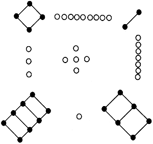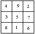 关于九宫图,有一个美丽的传说.相传在古代,东方闹水灾,大禹治水时,在洛水发现一只“神龟”,在它的背上画着一幅像左边这样的图,这幅象征吉祥的河图就叫“洛书”,用现在的数字写出来就是上面的九宫图.