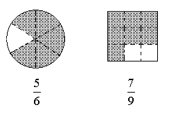 在每个图里的适当部分涂上颜色表示它下面的分数.