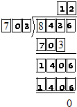 观察题干可知,第一次相除:8□□÷7□□,除得的商是1,则余数加上落下的个位数字应该是1□□□,所以第二次除得的商应该是2,即商是12,除数应该是7□3,此题答案不唯一,□里面可以填0、1、2、3、4.
