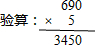 | 385×62= | 936÷8= | 804÷4= | 3450÷5= | 853÷7= |