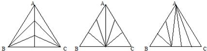 解答:解:根据等底等高的三角形面积相等这一结论,只要把原三角形分成六个等底等高的小三角形,它们的面积就必然相等.而要找这六个等底等高的小三角形,只需把三角形的某一边六等分,再将各分点与这边相对的顶点连接起来即可.