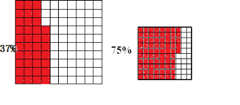 分析:分别把两个正方形看作单位“1”,都是把正方形平均分成100份,第一个涂其中的37份,第二个图形涂其中的75份;由此解答即可.