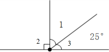 如图∠1=180°-∠2-∠3=180°-90°-25°=65°.