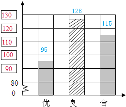分析:(1)因为良好的人数是128人,从统计图得出:128分成了两部分,下面一个格子是80,则上面的格子的和是128-80=48人,推断出上面的格子的单位长度是10人,据此填数据即可;