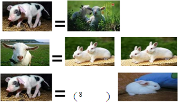 由此1头猪的重量=2只羊的重量=8只白兔的重量.
