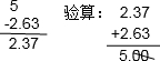 解答:解:5-2.63=2.37;