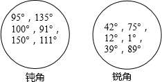分析:根据锐角、钝角、直角的含义进行解答:锐角:大于0°小于90°的角;钝角:大于90°小于180°的角;直角:等于90°的角;据此解答即可.