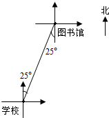 因为学校在图书馆的南偏西我0°方向上,所以图书馆在学校的北偏东我0°方向上.