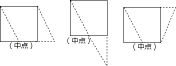 分析:第一个正方形沿虚线剪成两部分,这两部分可拼成平行四边形;第二个既可以拼成平行四边形,也可以拼成下三角和梯形;第三个拼成的图形为特殊的平行四边形正方形;第四个可拼成平行四边形.