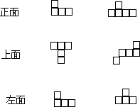 (3)第一个立体图形,从左边看有两行,上面一行有1个正方形,在最左边,下面一行有3个正方形;第二个立体图形,从左面看有两行,上面一行有1个正方形,在中间,下面一行有三个正方形,据此即可画图.