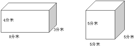 长方体的体积:8×3×4=96(立方分米);