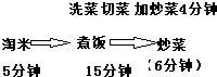 分钟.分析:此类题目要奔着节约时间又不使每道程序互相矛盾的情况下进行分析解决,根据题干可知:煮饭的15分钟,可以同时洗菜、切菜还能炒菜4分钟,由此即可设计出小光煮饭的工序,从而计算得出所用的时间.